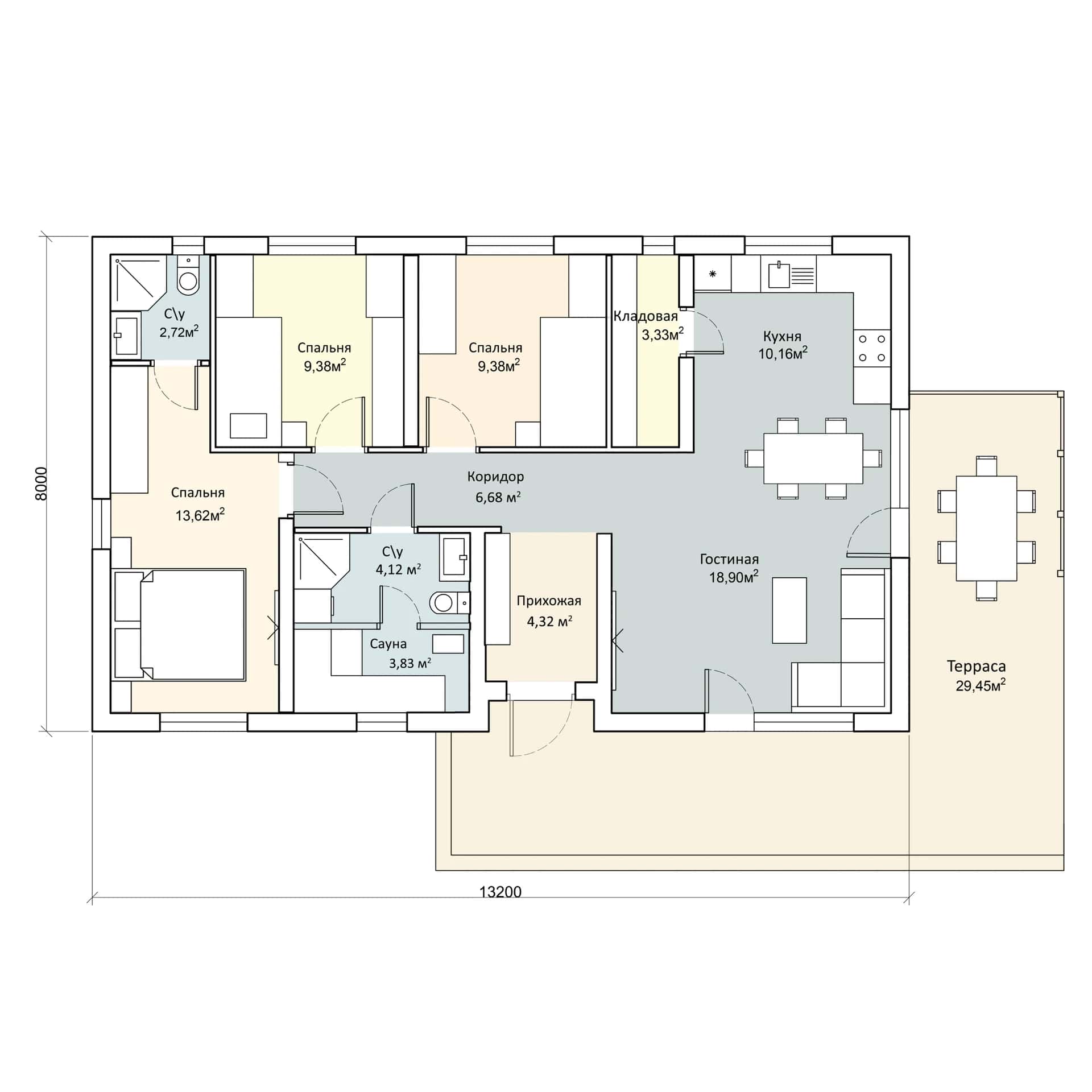 Размер дома: 13,2х8 м
