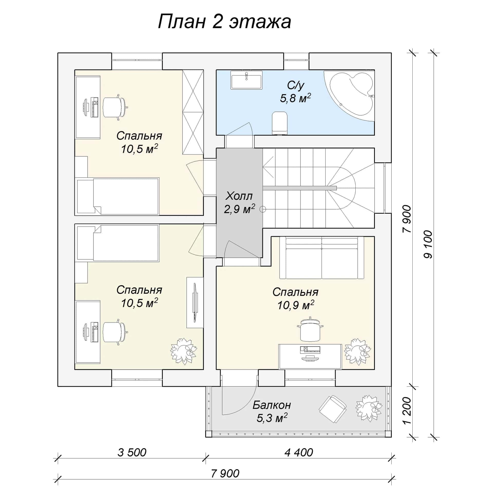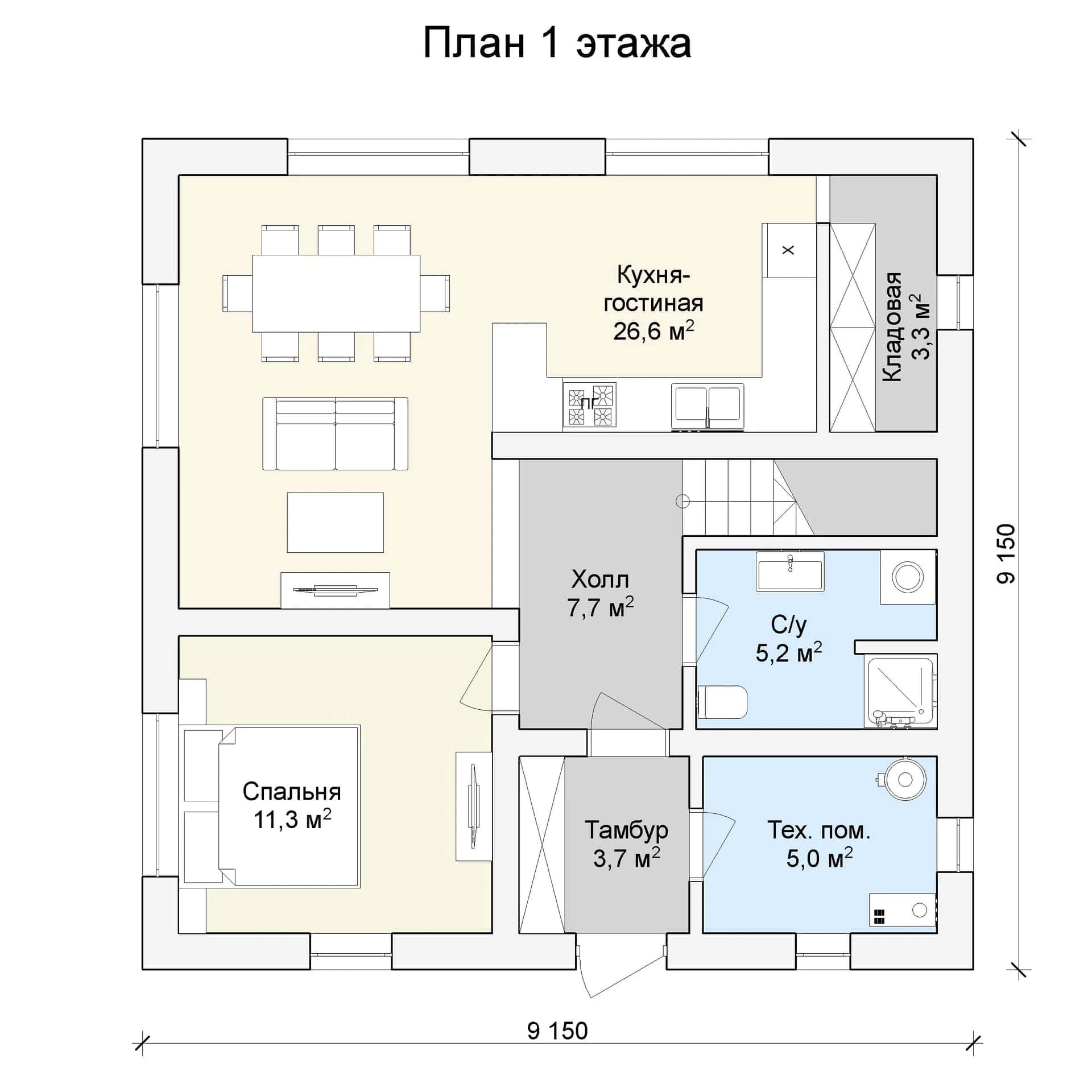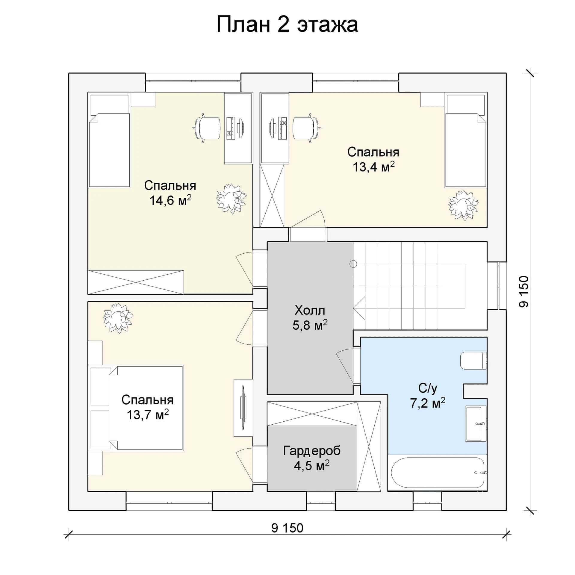 Размер дома: 9,1х9,1 м