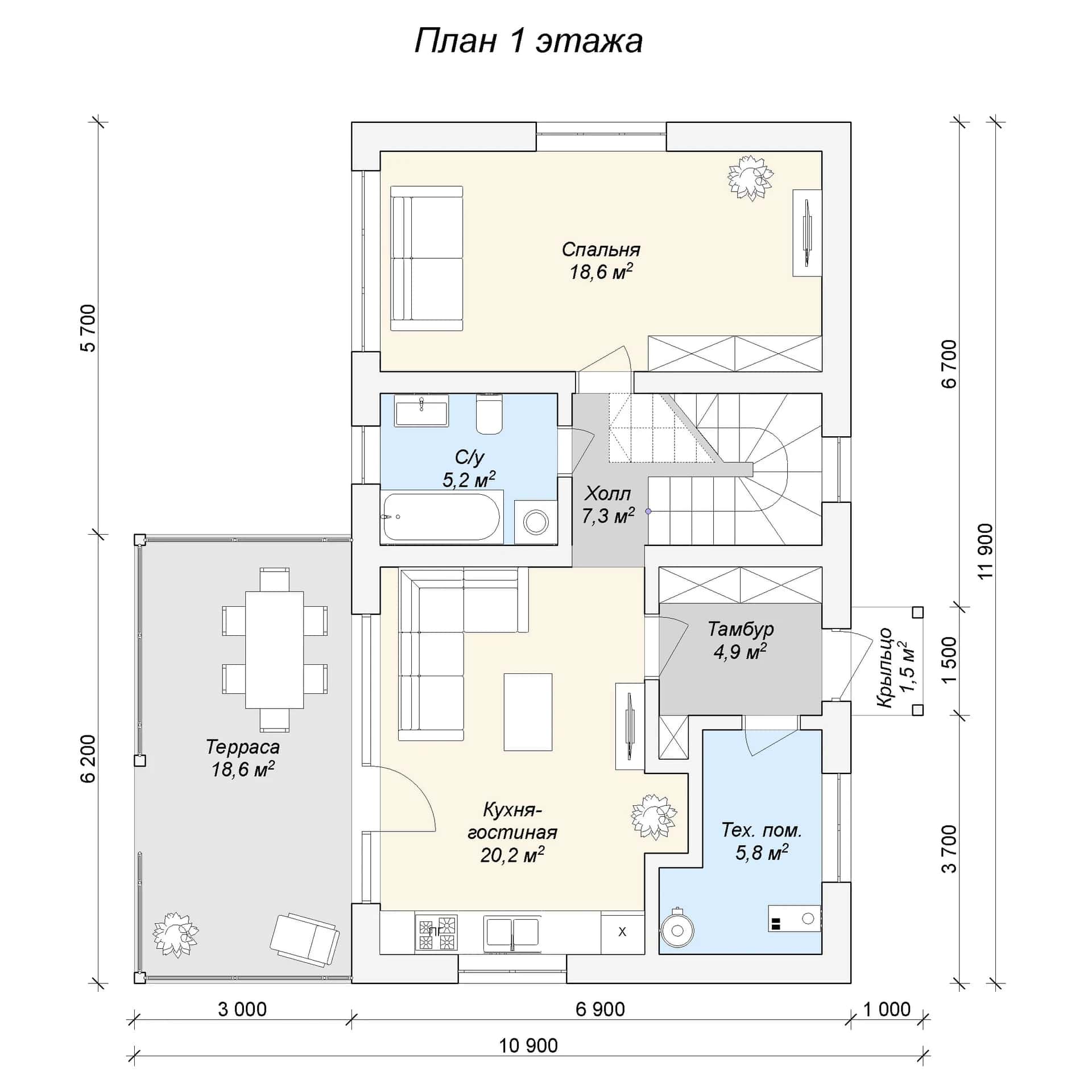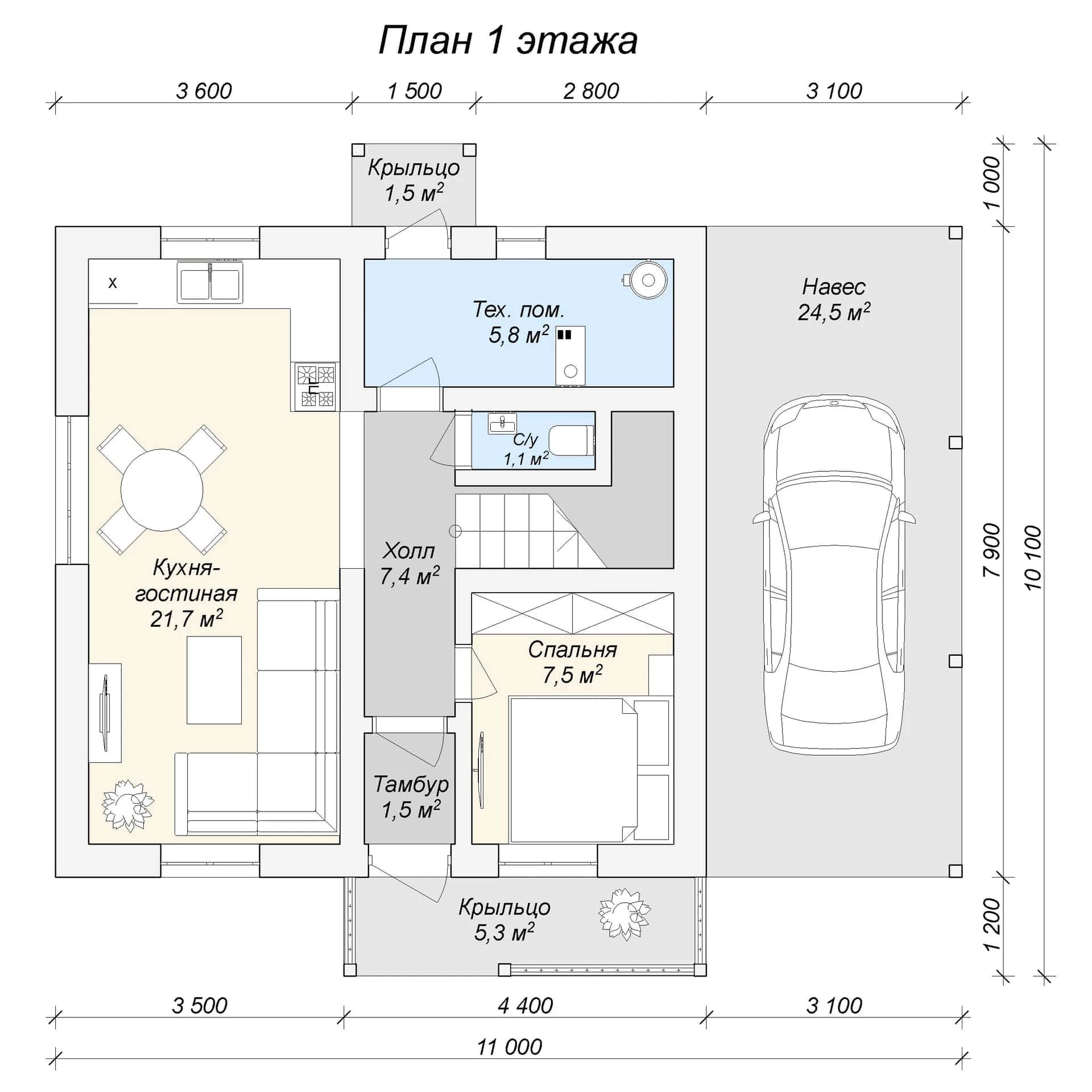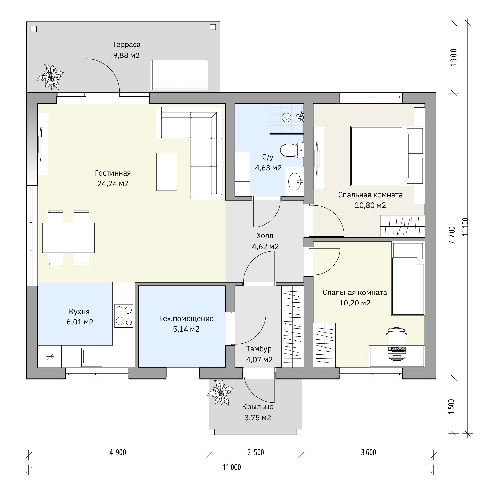 Размер дома: 11х10,1 м