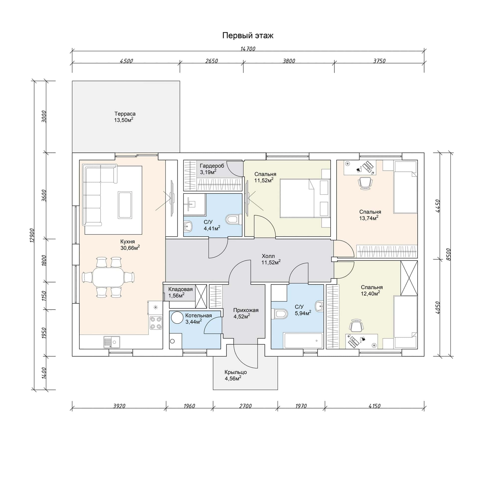 Размер дома: 14,7х12,9 м
