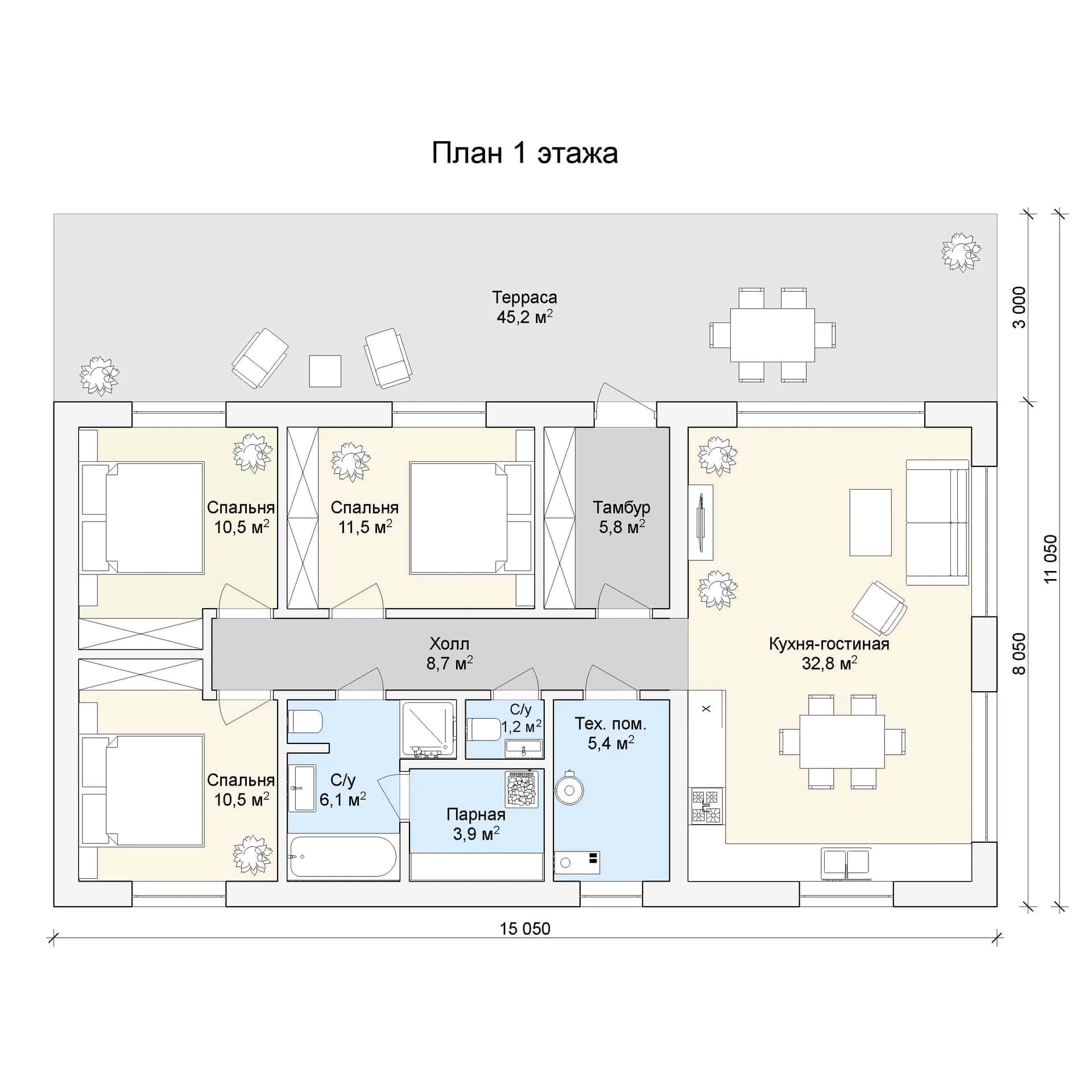 Размер дома: 15х11 м