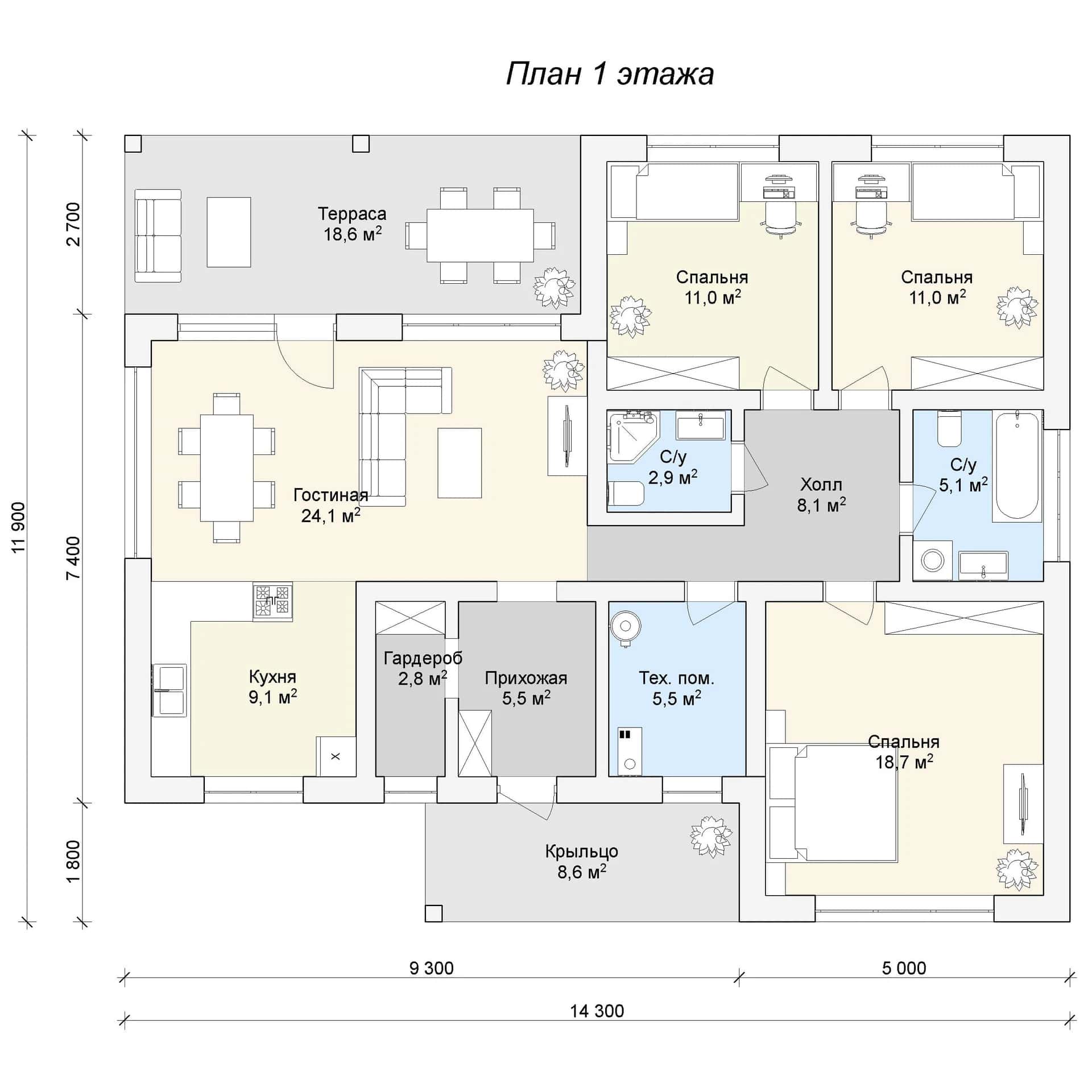 Размер дома: 14,3х11,9 м