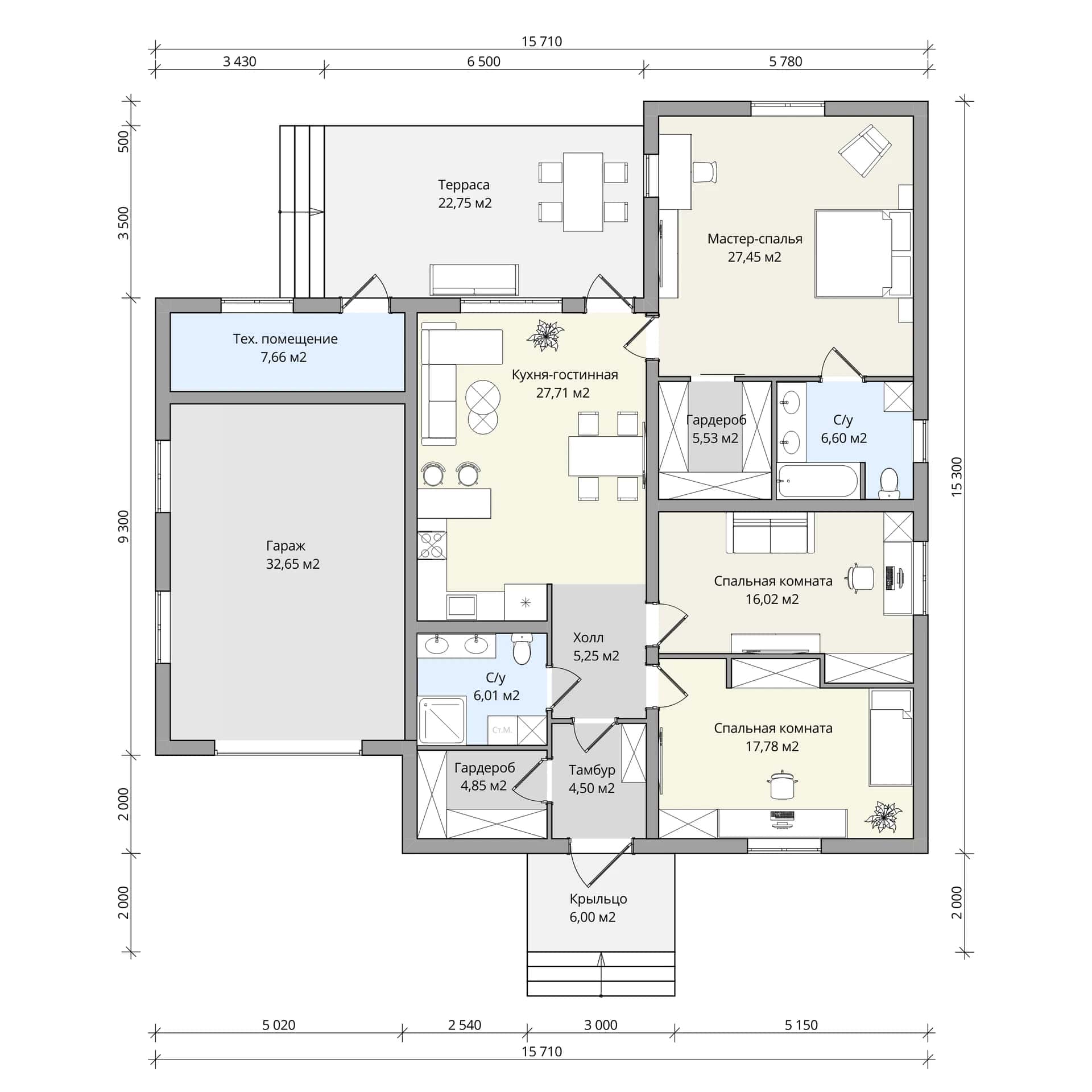Размер дома: 15,7х15,3 м