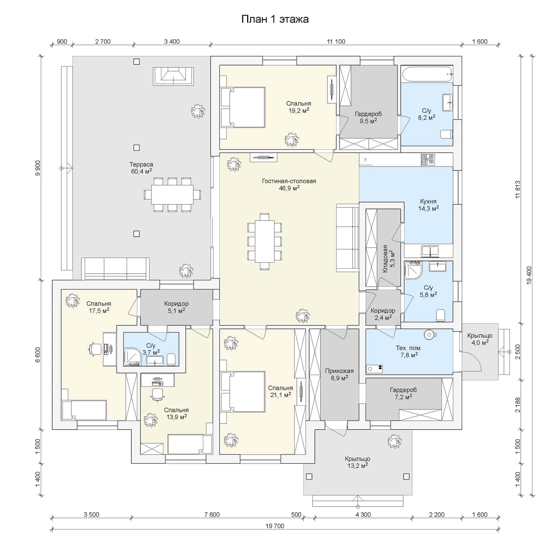 Размер дома: 19,7х19,4 м