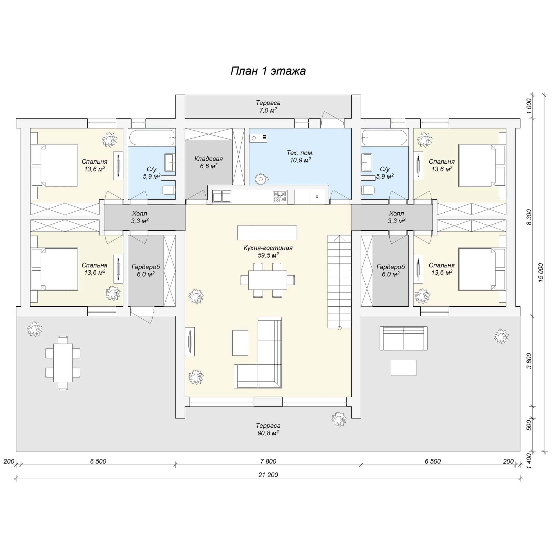 Размер дома: 21,2х15 м