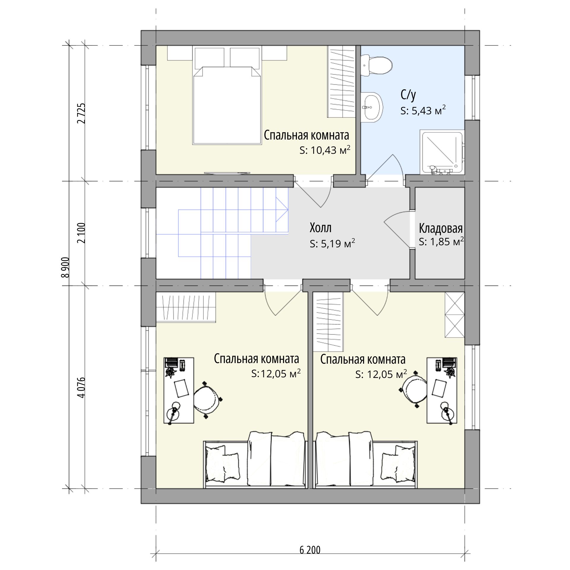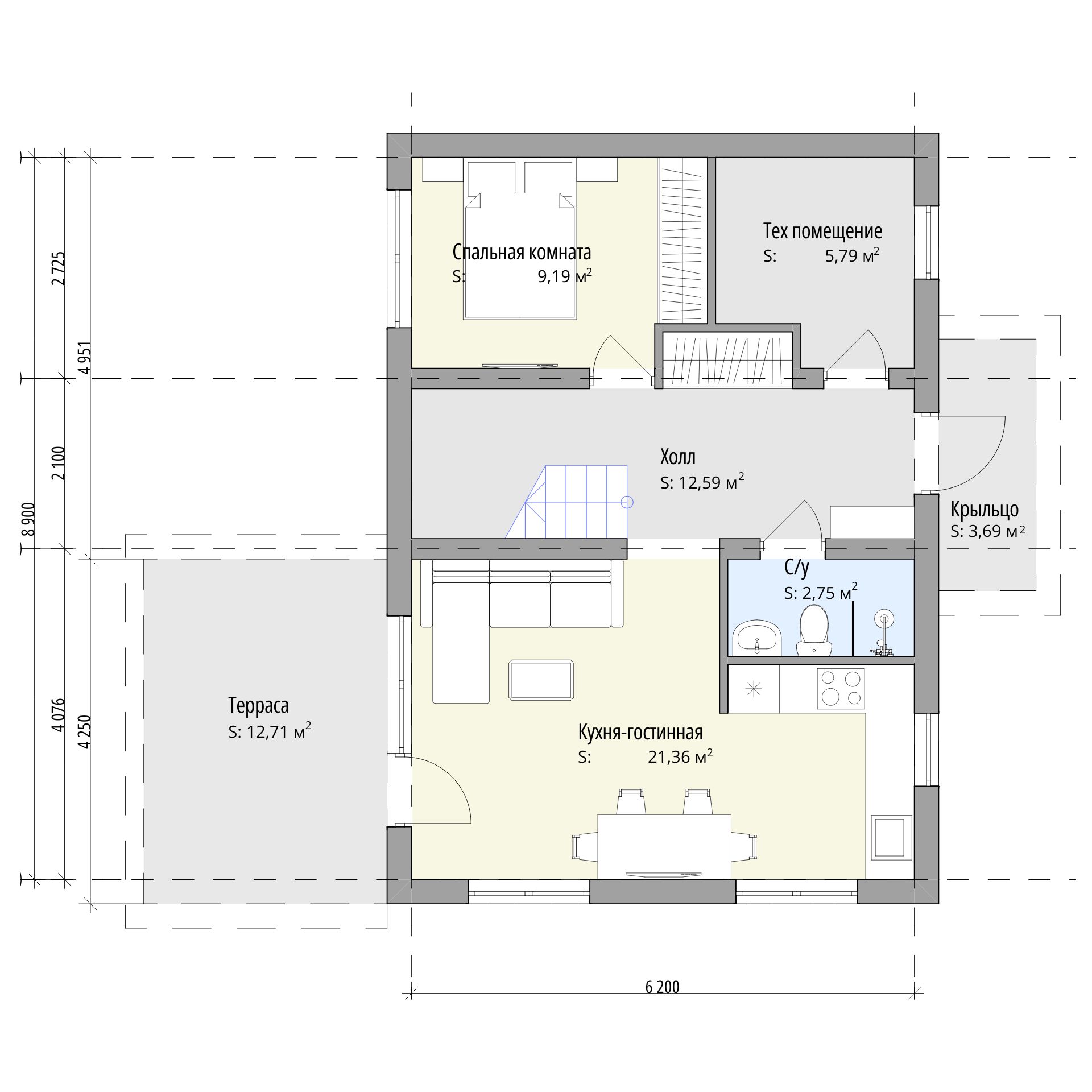 Размер дома: 6,2х8,9 м