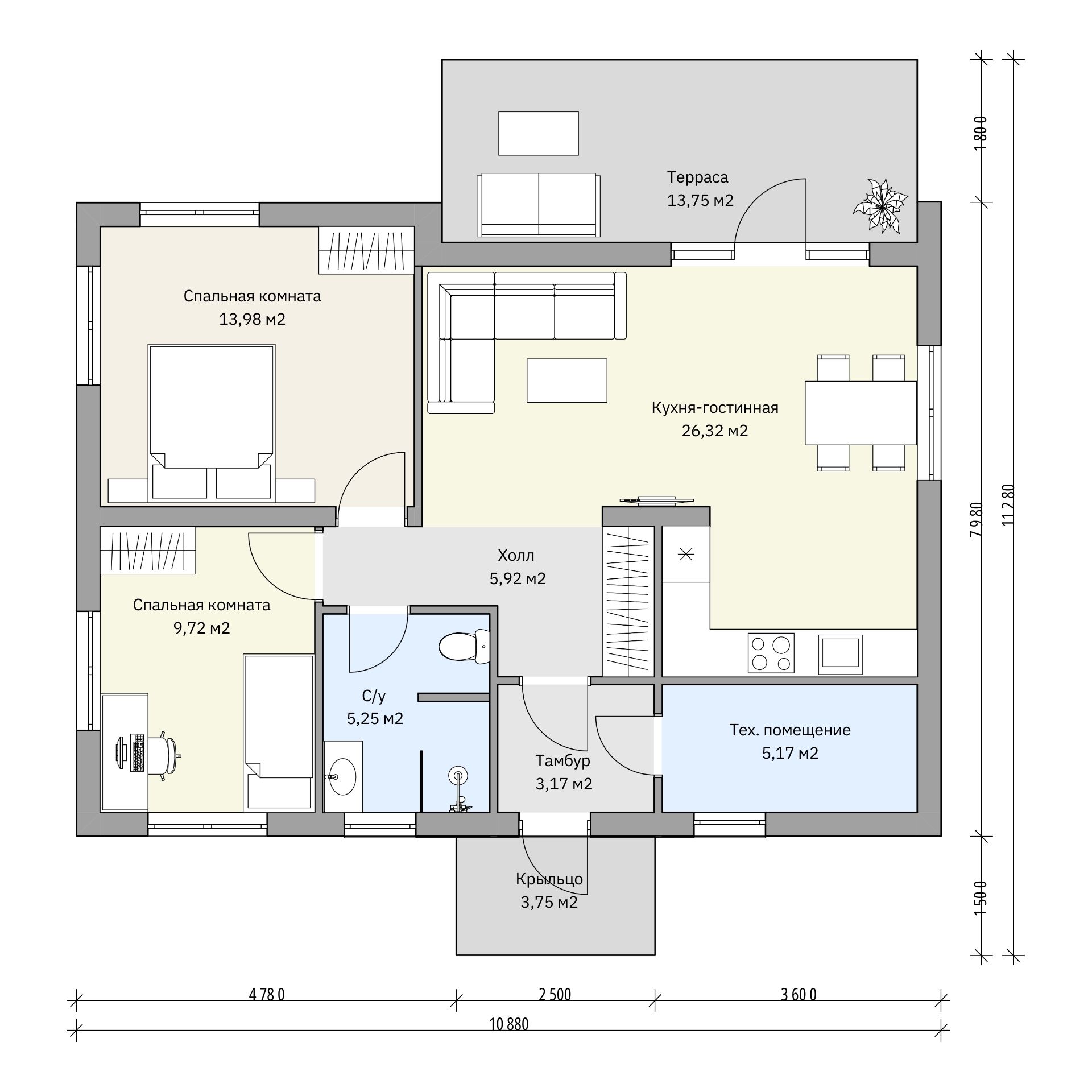 Площадь дома: 98 м²